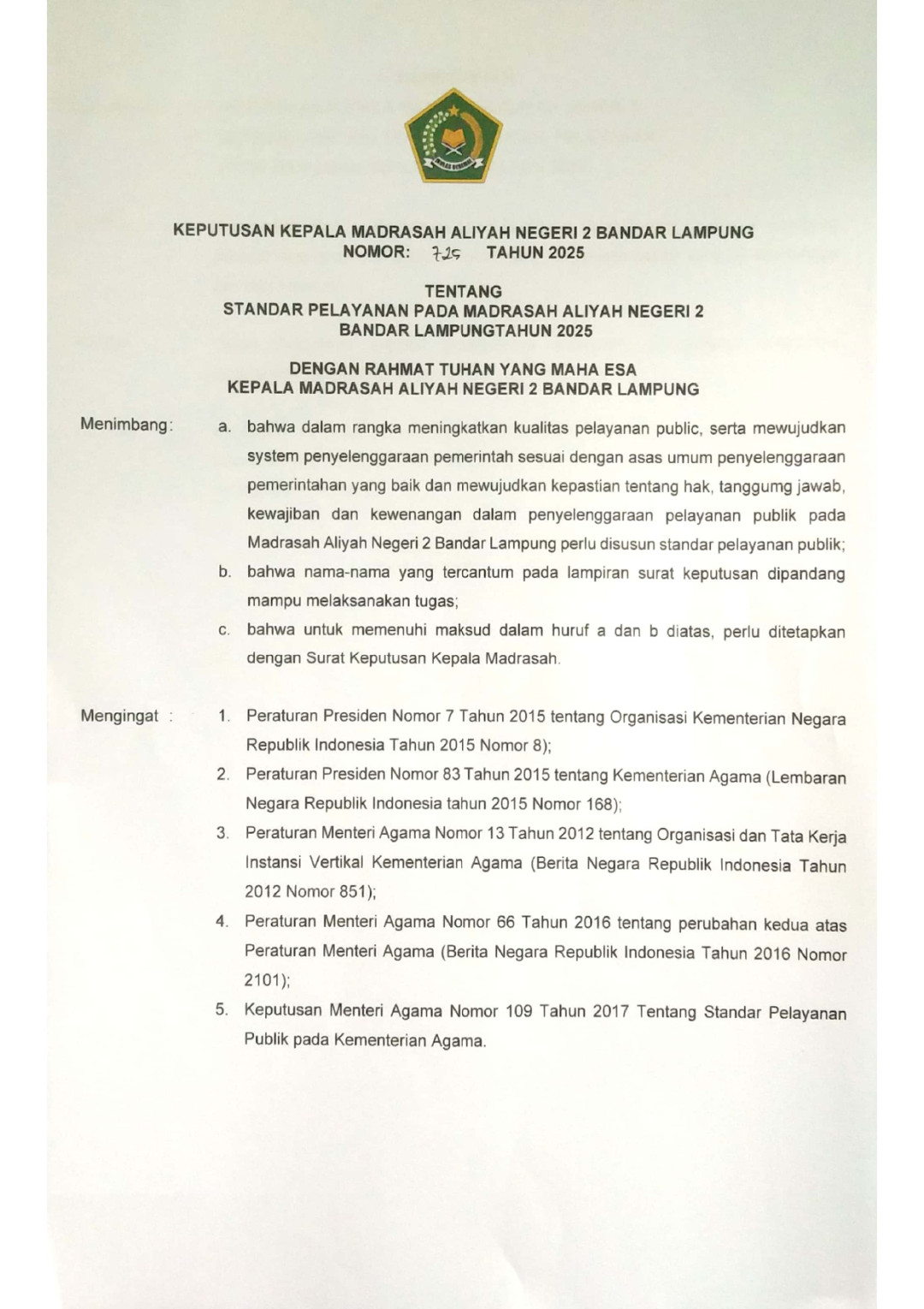 PENETAPAN KELULUSAN SISWA KELAS XII MAN 2 BANDAR LAMPUNG TAHUN PELAJARAN 2024/2025