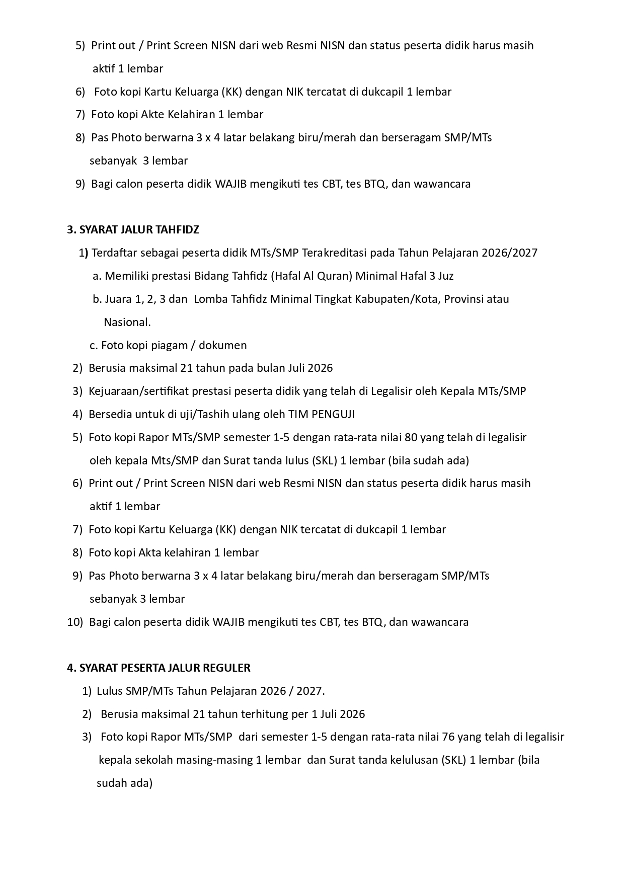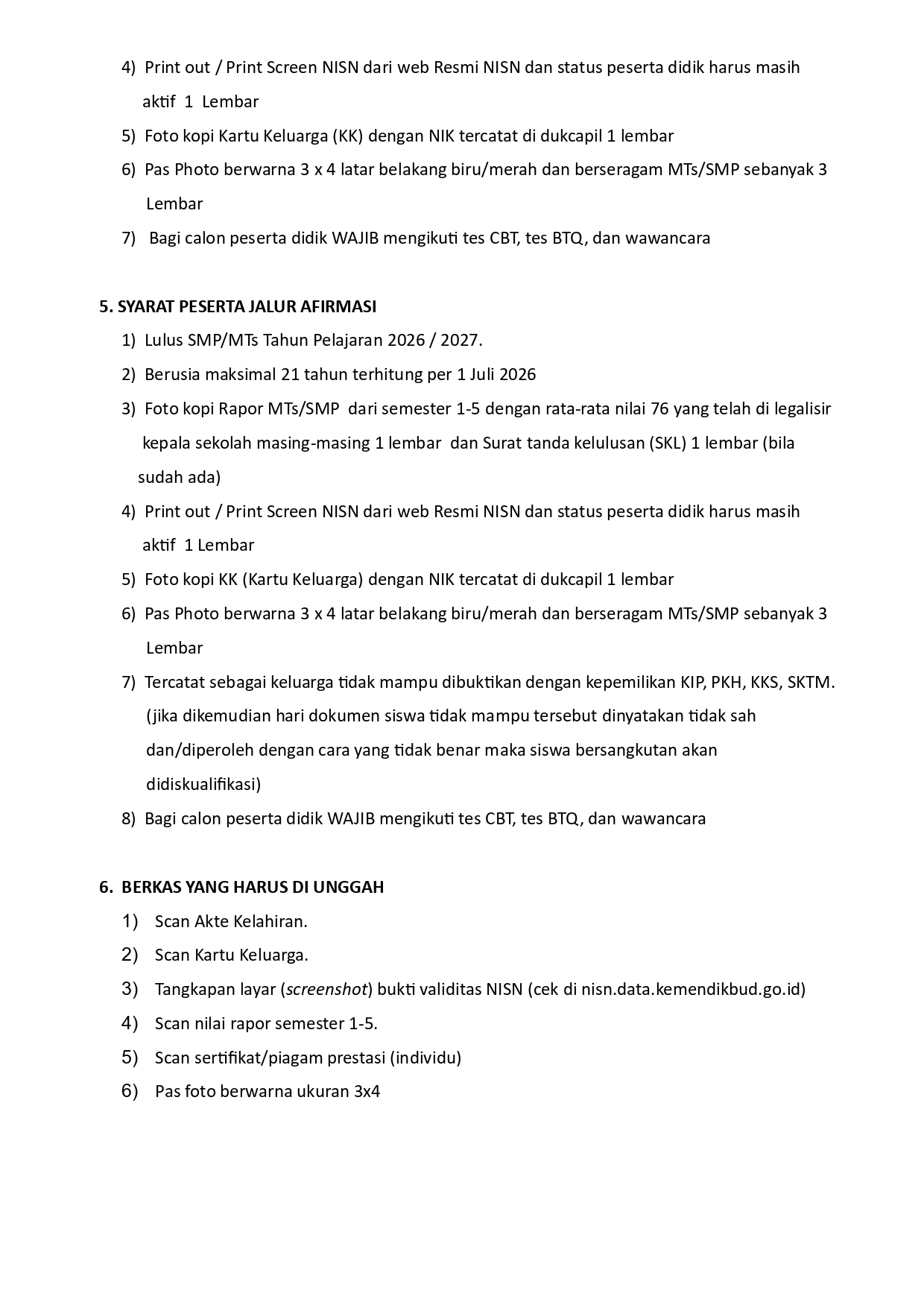 PERSYARATAN PENERIMAAN PESERTA DIDIK BARU MADRASAH (PPDBM) JALUR REGULER, PEMINATAN ASRAMA DAN AFIRMASI TAHUN PELAJARAN 2025/2026