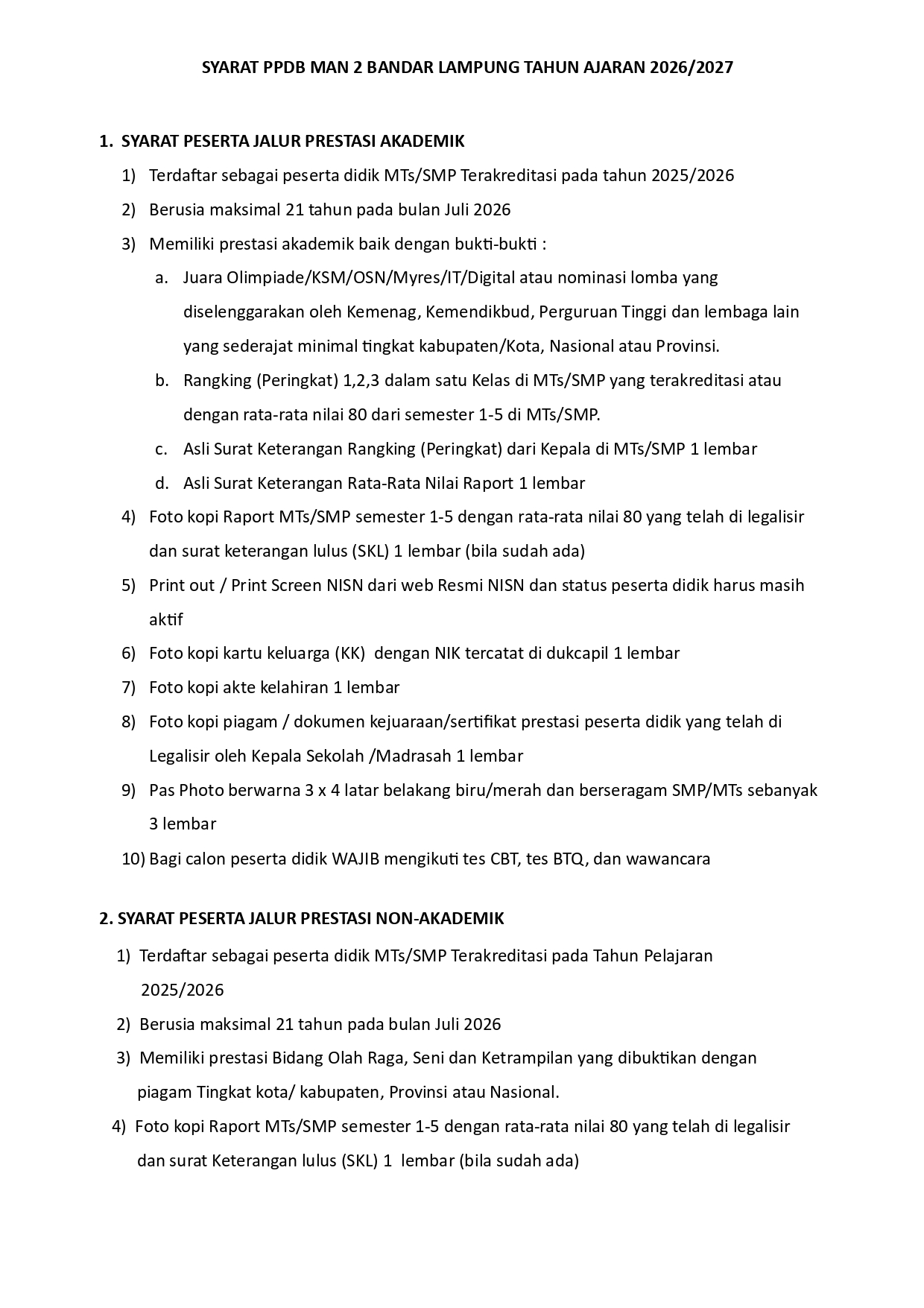 PENERIMAAN PESERTA DIDIK BARU (PPDB) MAN 2 BANDAR LAMPUNG JALUR REGULAR DAN ASRAMA TAHUN 2024/2025
